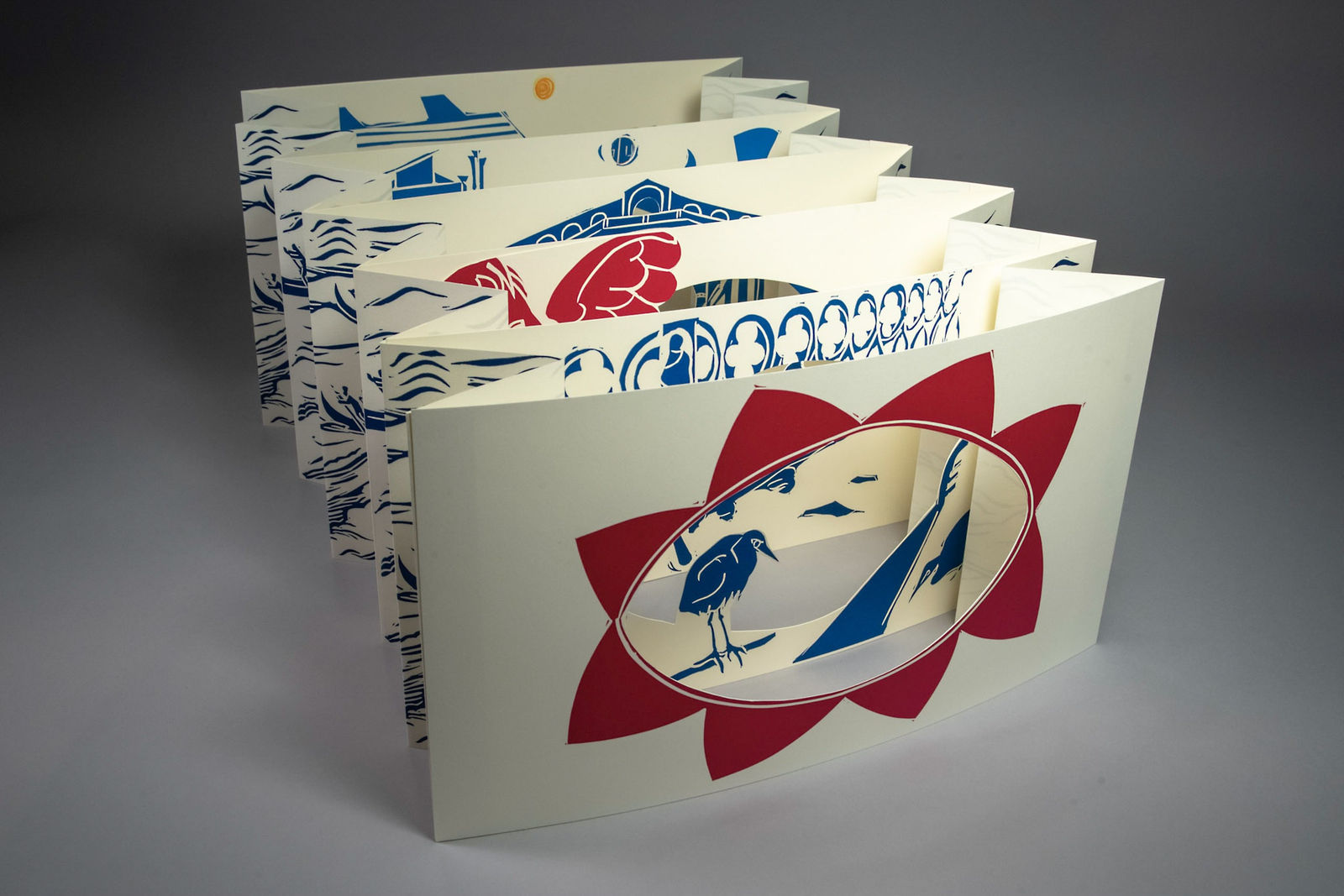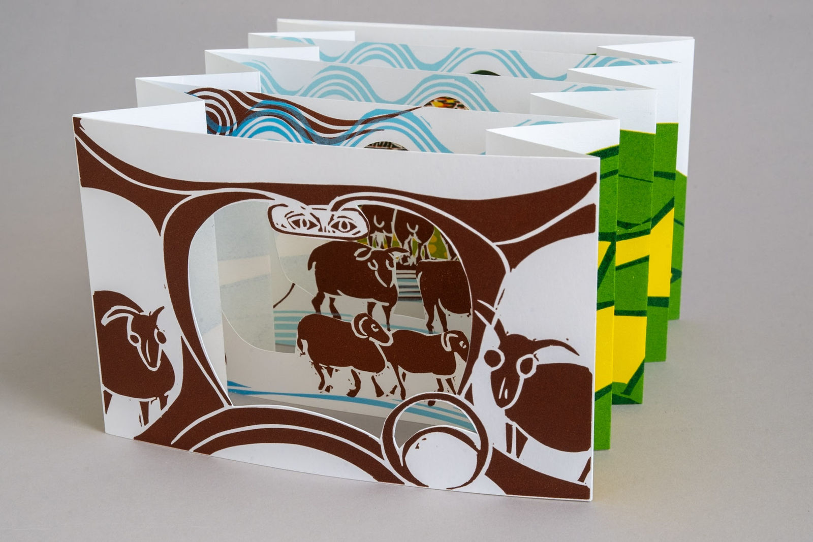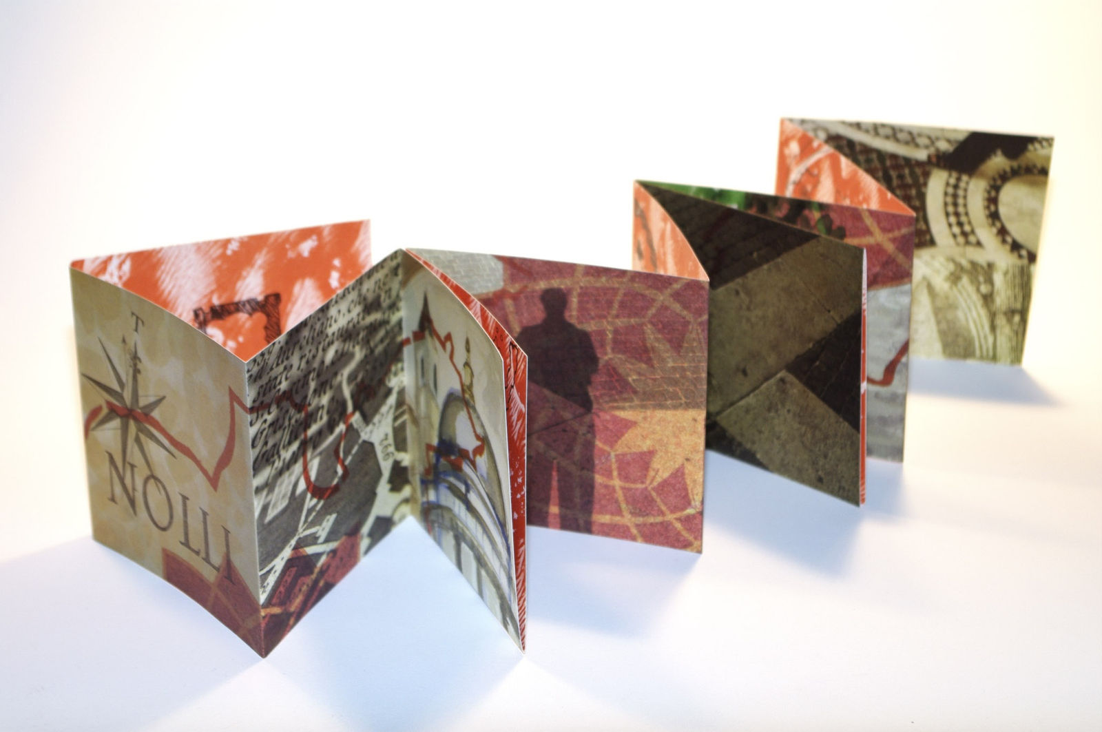 Book artist Alice Austin creates sculptural books that celebrate place: Italy, Ireland and Philadelphia. Her graphic prints, from hand-carved linoleum, distill images and evoke place. The unusual sculptural forms of her books present the idea of the artwork. Words, when used, reinforce the visual. Colour and texture abound, drawing the viewer in to explore, with the artist, places near and far.
